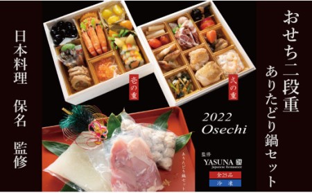 佐賀県有田町 F50-6 日本料理保名監修 おせち二段重 鍋セット付 12月31日着 50,000円 出典:ふるなび
