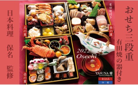 佐賀県有田町 F100-4 日本料理保名監修 おせち三段重 【数量限定】有田焼の器付き 100,000円 出典:ふるなび