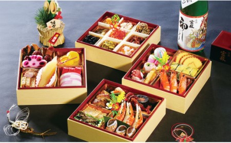 佐賀県有田町 F50-7 特製 おせち 四段重と日本酒セット 宗政酒造 12月31日着 50,000円 出典:ふるなび