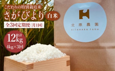 佐賀県江北町 【2023年4月~6月発送】【こだわりの特別栽培米】<全3回定期便>白米 さがびより 4kg【北原農園】特A米 特A評価[HCA010] 25,000円 出典:ふるなび