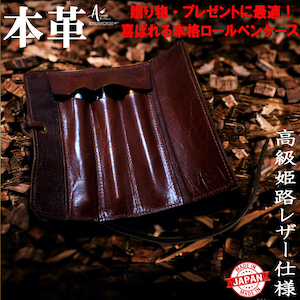 長崎県長崎市 【2632-0731】【ギフト用】 牛本革 姫路レザー ロールペンケース ブラウン 一点 46,000円 出典:ふるなび