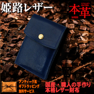 長崎県長崎市 【2632-0736】姫路産オイルレザー 牛本革 二つ折り財布 ROYALBLUE コンパクトウォレット 76,000円 出典:ふるなび