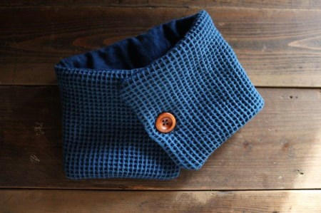 長崎県大村市 0579.藍染ボタンネックウォーマー 20,000円 出典:ふるなび