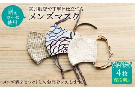 長崎県東彼杵町 【メンズ/柄物】京呉服店で丁寧に仕立てた晒・ガーゼマスク4枚セット(保冷剤入)【入江京呉服店】 [BBQ027] 10,000円 出典:ふるなび
