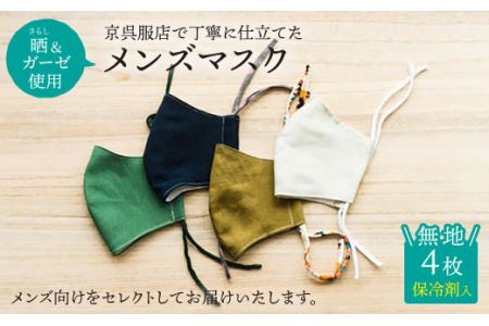 長崎県東彼杵町 【メンズ/無地】京呉服店で丁寧に仕立てた晒・ガーゼマスク4枚セット(保冷剤入)【入江京呉服店】 [BBQ028] 10,000円 出典:ふるなび