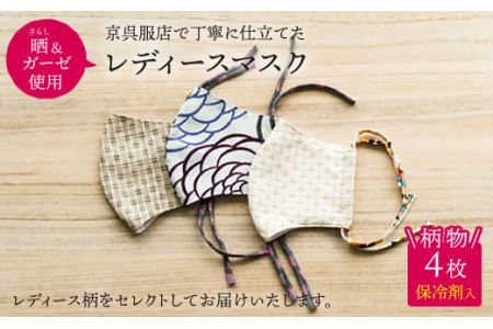 長崎県東彼杵町 【レディース/柄物】京呉服店で丁寧に仕立てた晒・ガーゼマスク4枚セット(保冷剤入)【入江京呉服店】 [BBQ029] 10,000円 出典:ふるなび