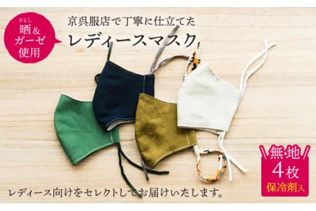 長崎県東彼杵町 【レディース/無地】京呉服店で丁寧に仕立てた晒・ガーゼマスク4枚セット(保冷剤入)【入江京呉服店】 [BBQ030] 10,000円 出典:ふるなび