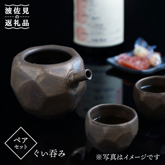 【波佐見焼】面取り片口注器 ぐい呑みペアセット 金泥釉【喜鶴製陶】 [IC37]