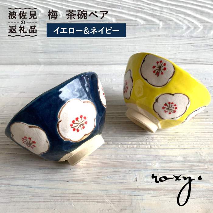 【波佐見焼】梅 茶碗ペア イエロー&ネイビー 【ROXY・HASAMI】 [SB71]