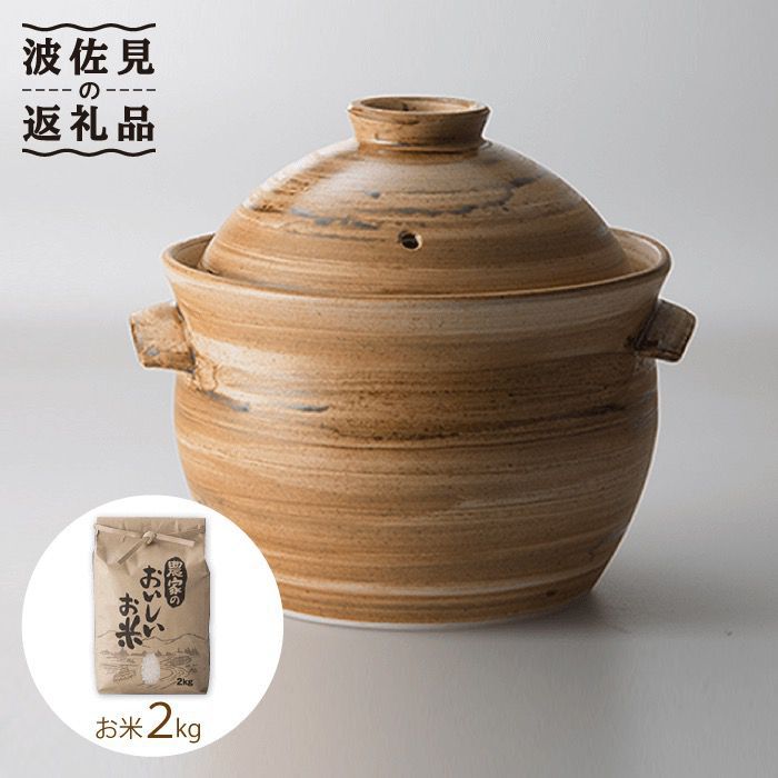 【波佐見焼】まろやかシリーズ 土鍋釜(3合炊き) 波佐見産米2kgセット【國右エ門窯】 [VB05]