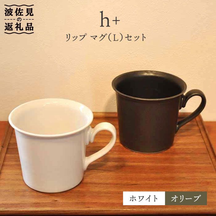 【波佐見焼】h+ リップ マグ(L)ホワイト&オリーブ【堀江陶器】 [JD87]