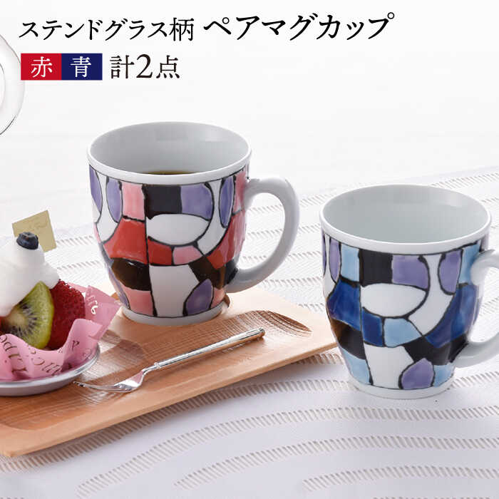 【波佐見焼】ステンドグラス柄 ペア マグカップ(青・赤) 食器 皿 【大新窯】 [DC25]