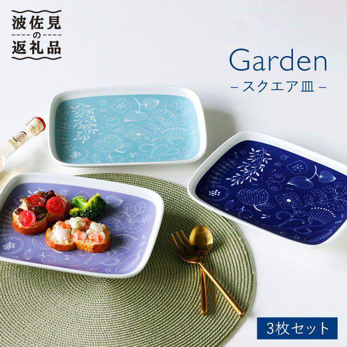 【波佐見焼】Garden スクエア皿L 3枚セット【石丸陶芸】 [LB26]