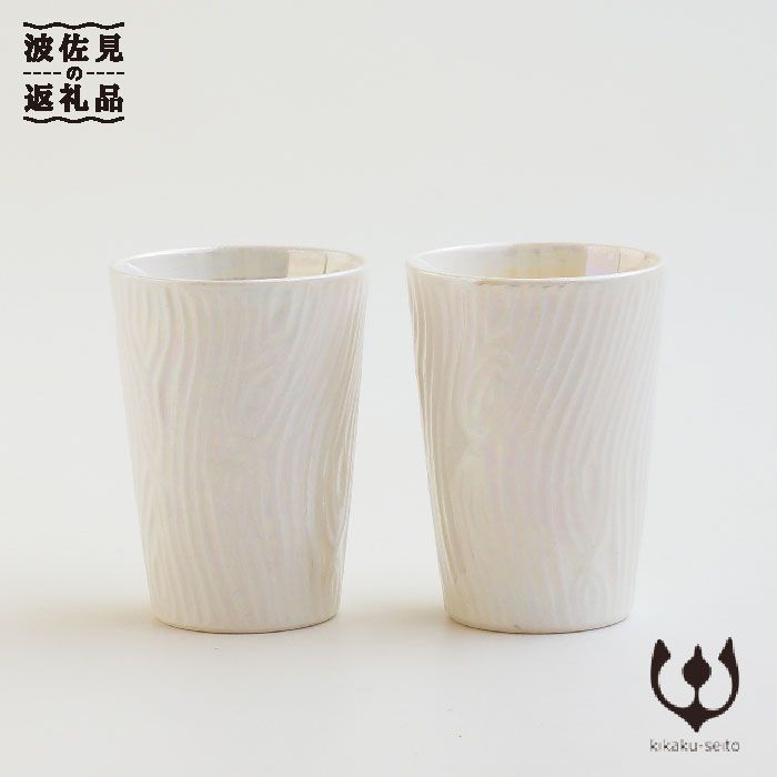 【波佐見焼】 木目 グイ呑み 白亜 ペアカップ 【喜鶴製陶】 [IC27]