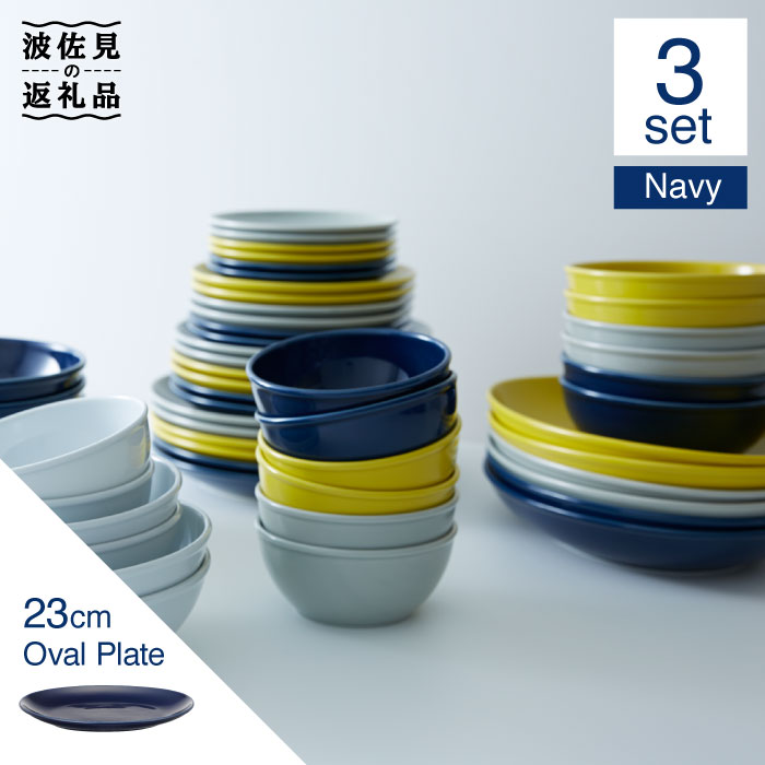 【波佐見ブランド/Common】オーバルプレート23cm ネイビー 3枚セット【東京西海】 [DD96]
