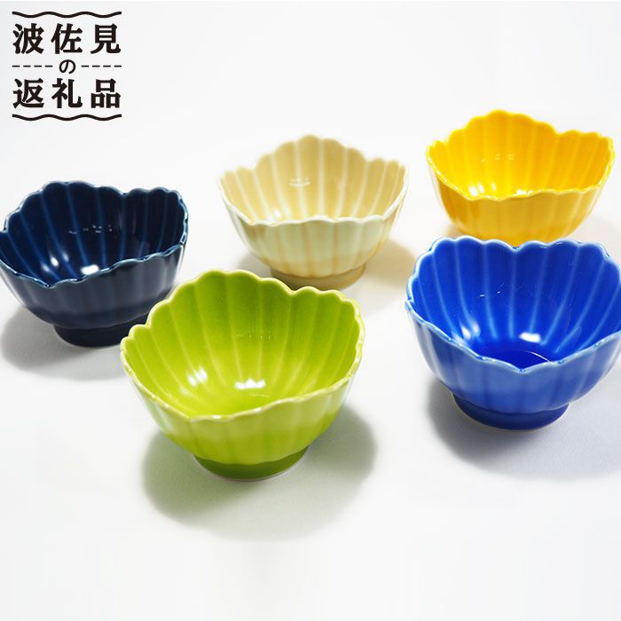 【波佐見焼】色変わり四ツ菊小付け5個セット【永泉】 [MC09]