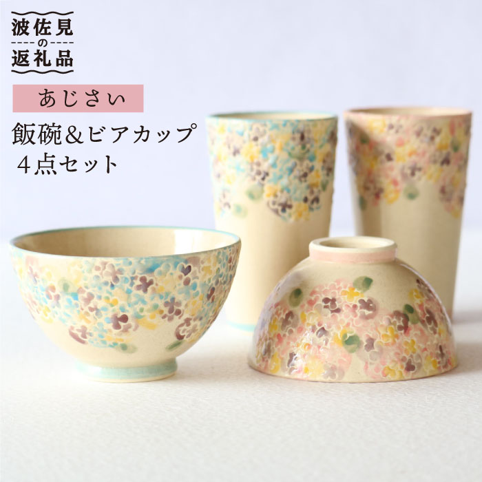 【波佐見焼】あじさい 飯碗&ビアカップ(細)ペアセット【協立陶器】 [TC35]