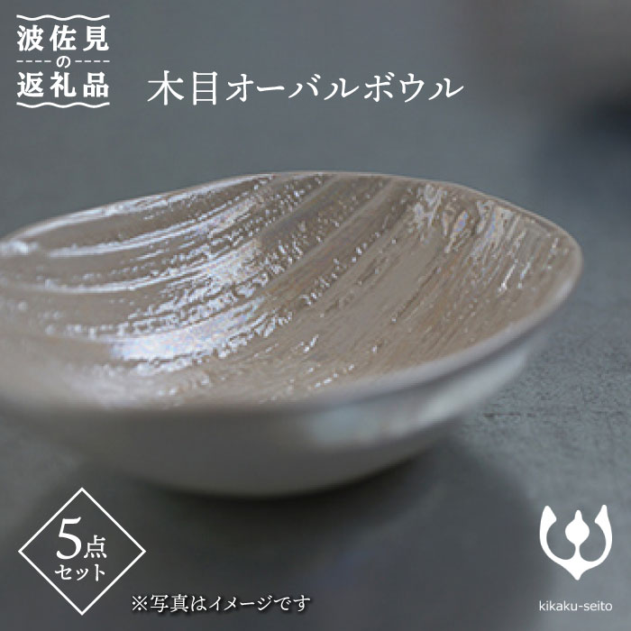 【波佐見焼】木目オーバルボウル(小)5点セット 白亜【喜鶴製陶】 [IC34]