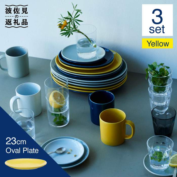 【波佐見ブランド/Common】オーバルプレート23cm イエロー 3枚セット【東京西海】 [DD99]