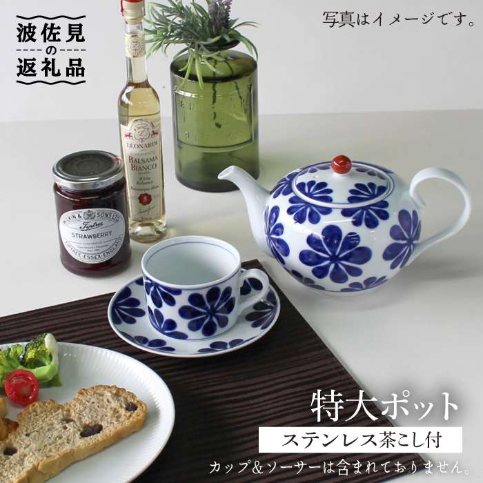 【波佐見焼】青い花 特大ポット(ステンレス茶こし付)【石丸陶芸】 [LB61]