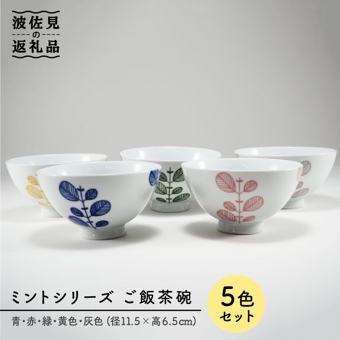 【波佐見焼】ミント 5色絵変わりご飯茶碗【永泉】 [MC22]