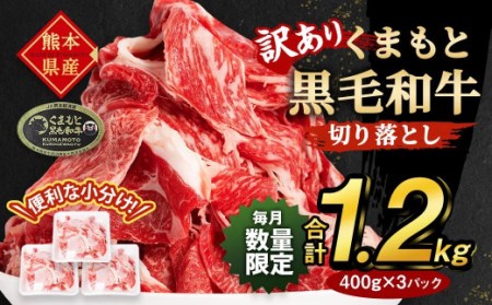 熊本県八代市 【2023年3月末までにお届け】【訳あり】 くまもと黒毛和牛 切り落とし 1.2kg ミックス 牛肉 10,000円 出典:ふるなび