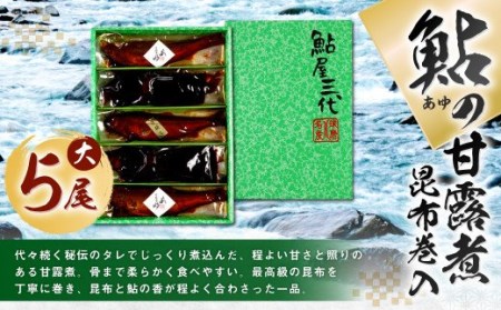 熊本県八代市 鮎の甘露煮昆布巻入(大)5尾(甘露煮、昆布巻き、子持ち鮎の甘露煮など) 30,000円 出典:ふるなび