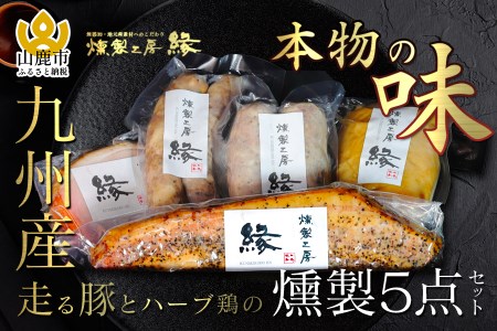 熊本県山鹿市 AG01 走る豚と九州産ハーブ鶏の燻製5点セット(豚肉・鶏肉・ベーコン・ソーセージ・フランクフルト・スモーク) 12,000円 出典:ふるなび