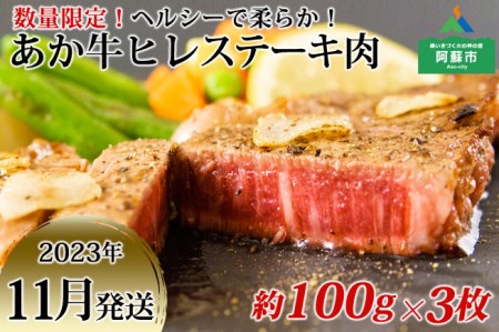 熊本県阿蘇市 【2023年11月発送】あか牛ヒレステーキ肉 約100g×3枚 熊本県阿蘇市 20,000円 出典:ふるなび