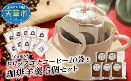 熊本県天草市 S018-003_くまモン ドリップコーヒー 10袋 & 珈琲羊羹 5個 セット 14,000円 出典:ふるなび