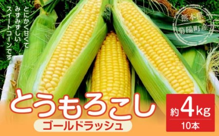 熊本県菊陽町 【2023年6月発送開始】 とうもろこし ゴールドラッシュ 約4kg (10本) 熊本県産 国産 甘い スイートコーン 12,000円 出典:ふるなび