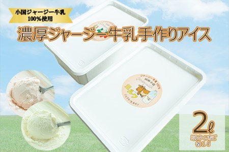 熊本県小国町 【大容量2L】濃厚ジャージ牛乳手作りアイス(1L×2種:ミルク・いちご) 9,000円 出典:ふるなび