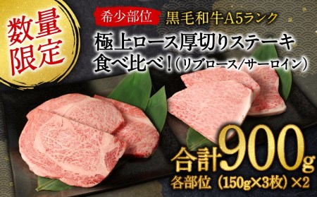 熊本県高森町 【希少部位|444セット限定】熊本県産 黒毛和牛 A5ランク 極上 ロース 厚切り ステーキ 食べ比べ セット 各部位150g×3枚 計900g 国産 30,000円 出典:ふるなび