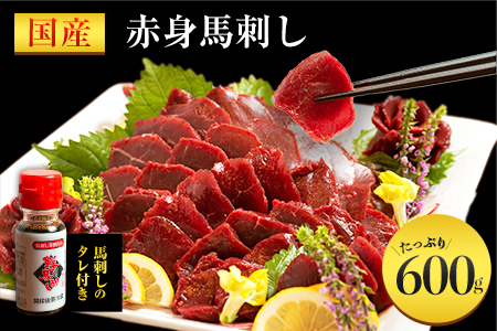 熊本県南阿蘇村 国産赤身馬刺し 約600g 馬刺しのたれ付き 約100g×6ブロック 《8月上旬-9月上旬頃より順次出荷》 馬肉 冷凍 新鮮 さばきたて 真空パック SQF ミシュラン 生食用 肉 10,000円 出典:ふるなび