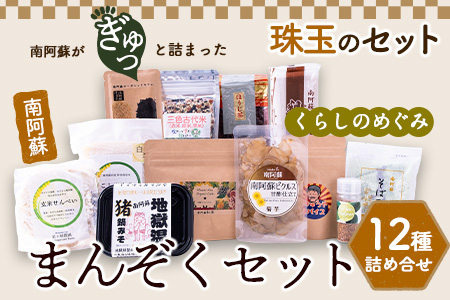 熊本県南阿蘇村 南阿蘇くらしのめぐみ「まんぞくセット」《30日以内に順次出荷(土日祝除く)》熊本県 南阿蘇村 合資会社井手商店 味噌 こしひかり そば コーヒー ほうじ茶 せんべい 古代米 21,000円 出典:ふるなび