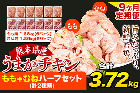 熊本県氷川町 【9ヶ月定期便】うまかチキン もも+むねハーフセット(計2種類) 1回のお届け3.72kg 合計約33.48kgお届け《お申込み月の翌月より出荷開始》カット済 もも 若鶏もも肉 むね肉 冷凍 真空 小分け 117,000円 出典:ふるなび