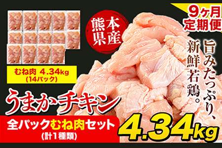 熊本県氷川町 【9ヶ月定期便】うまかチキン 全パックむね肉セット(計1種類) 合計4.34kg 合計 約39.06kgお届け《お申込み月の翌月より出荷開始》冷凍 小分け 胸肉 ムネ肉 冷凍 真空 小分け 117,000円 出典:ふるなび