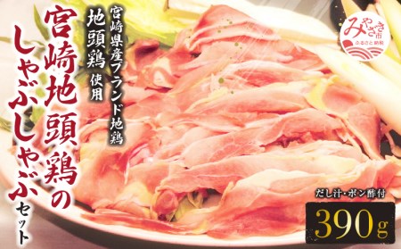 宮崎県宮崎市 宮崎地鶏のしゃぶしゃぶセット(地頭鶏スライス390g、だし汁600g、ポン酢180g) 15,000円 出典:ふるなび