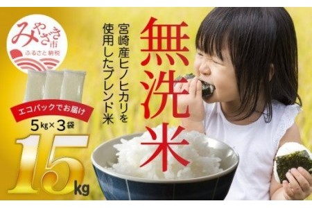 宮崎県宮崎市 2022年11月中発送【無洗米】宮崎の米 無洗米5kg×3袋入り 15kg 10,000円 出典:ふるなび