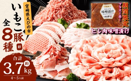 宮崎県えびの市 期間限定! プラス1品! いもこ豚 全8種 約3.7kgセット(4~5人前) ※8月発送分 15,000円 出典:ふるなび