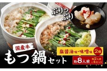 宮崎県えびの市 国産牛 もつ鍋セット 塩醤油味・味噌味 約8人前(約2人前×4セット) 14,000円 出典:ふるなび