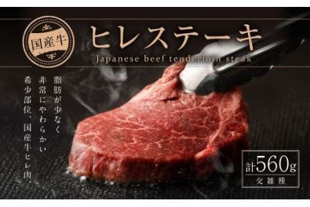 宮崎県えびの市 国産牛 交雑種 ヒレステーキ合計560g(140g?4枚 ) 30,000円 出典:ふるなび