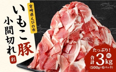 宮崎県えびの市 【3月発送分】いもこ豚 小間切れ 3㎏ 500g×6パック 切り落とし 豚肉 国産 10,000円 出典:ふるなび