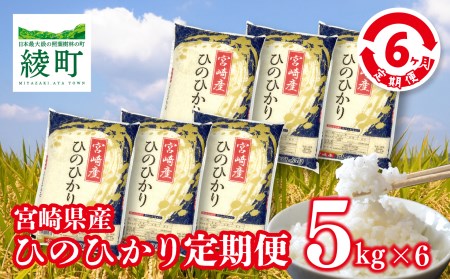宮崎県綾町 【6か月定期便】宮崎県産米「ひのひかり」5kg×6か月(04-47) 48,000円 出典:ふるなび