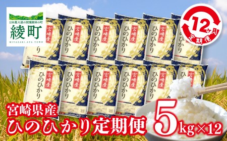 宮崎県綾町 【12か月定期便】宮崎県産米「ひのひかり」5kg×12か月(04-48) 72,000円 出典:ふるなび