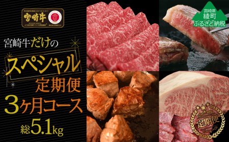 宮崎県綾町 【定期便】宮崎牛だけのスペシャル3か月コース 5.1kg(36-153) 200,000円 出典:ふるなび