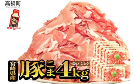 宮崎県高鍋町 <【7月発送】宮崎県産豚こま4kg+タレセット>2023年7月に順次発送【c473_tf_x2-jul】 16,000円 出典:ふるなび