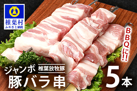 宮崎県椎葉村 椎葉放牧豚 BBQ用 ジャンボ豚バラ串 5本 (生冷凍) 11,500円 出典:ふるなび