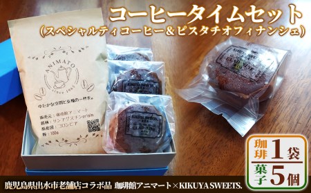 鹿児島県出水市 i563 鶴の飛来する町のコーヒータイムセット(スペシャルティコーヒー&焼き菓子(ピスタチオフィナンシェ))おうち時間にお楽しみください♪【珈琲館アニマート】 10,000円 出典:ふるなび