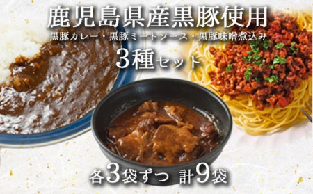 鹿児島県薩摩川内市 A-0191 鹿児島県産黒豚100% 合計9袋 総菜・カレー・ミートソース レンジで簡単レトルト3種×3袋 10,000円 出典:ふるなび